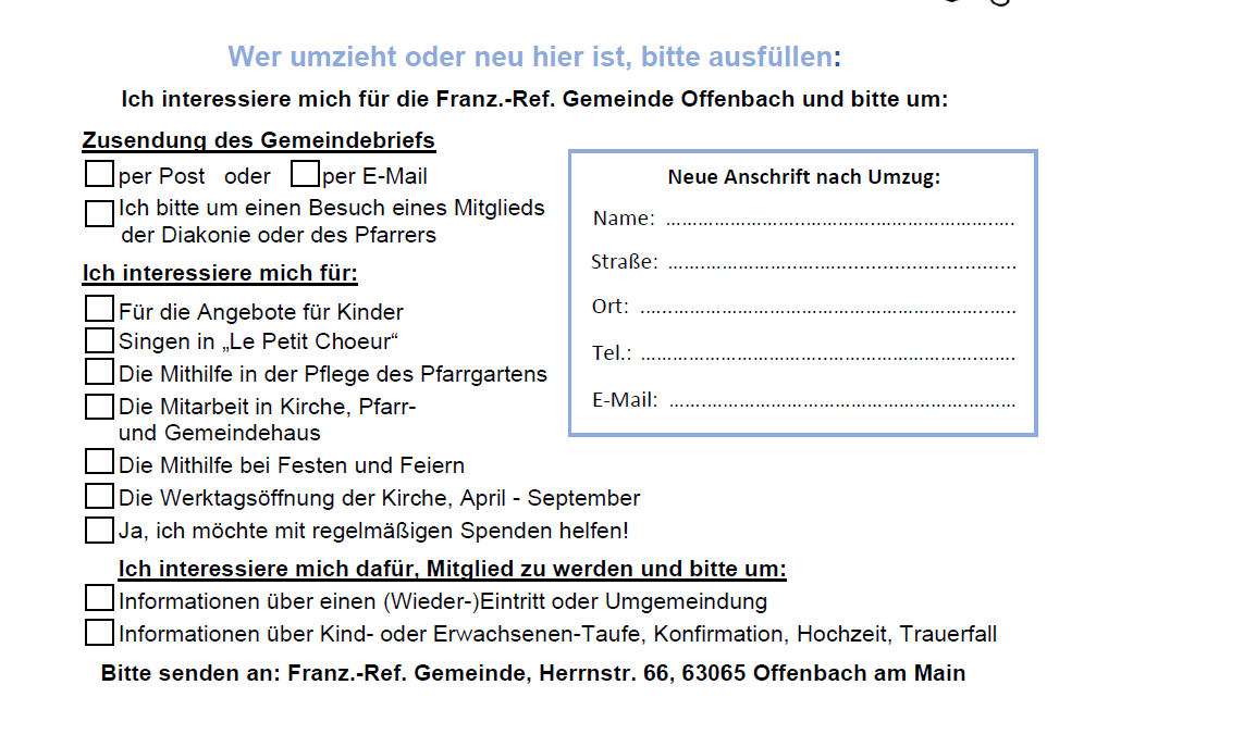 Information an die Gemeinde bei Umzug